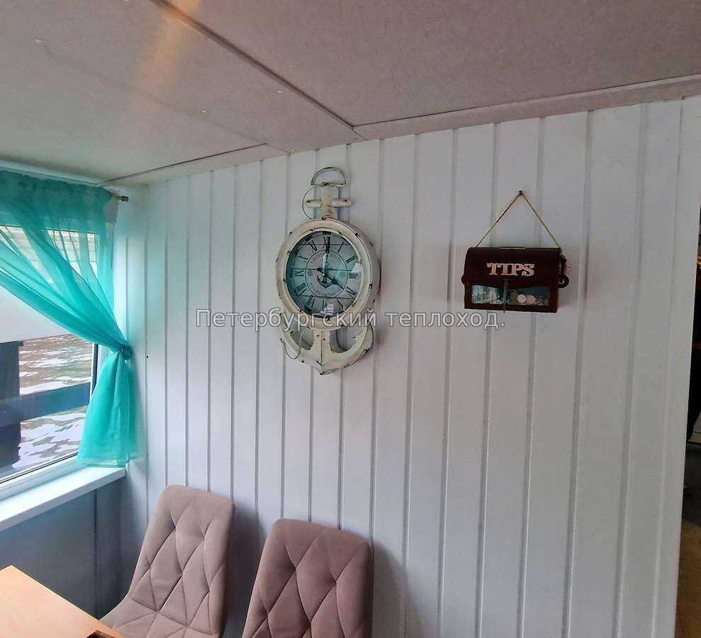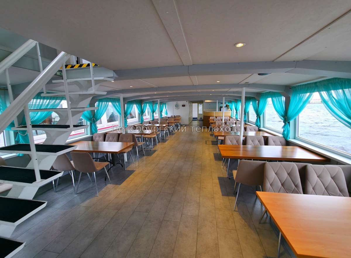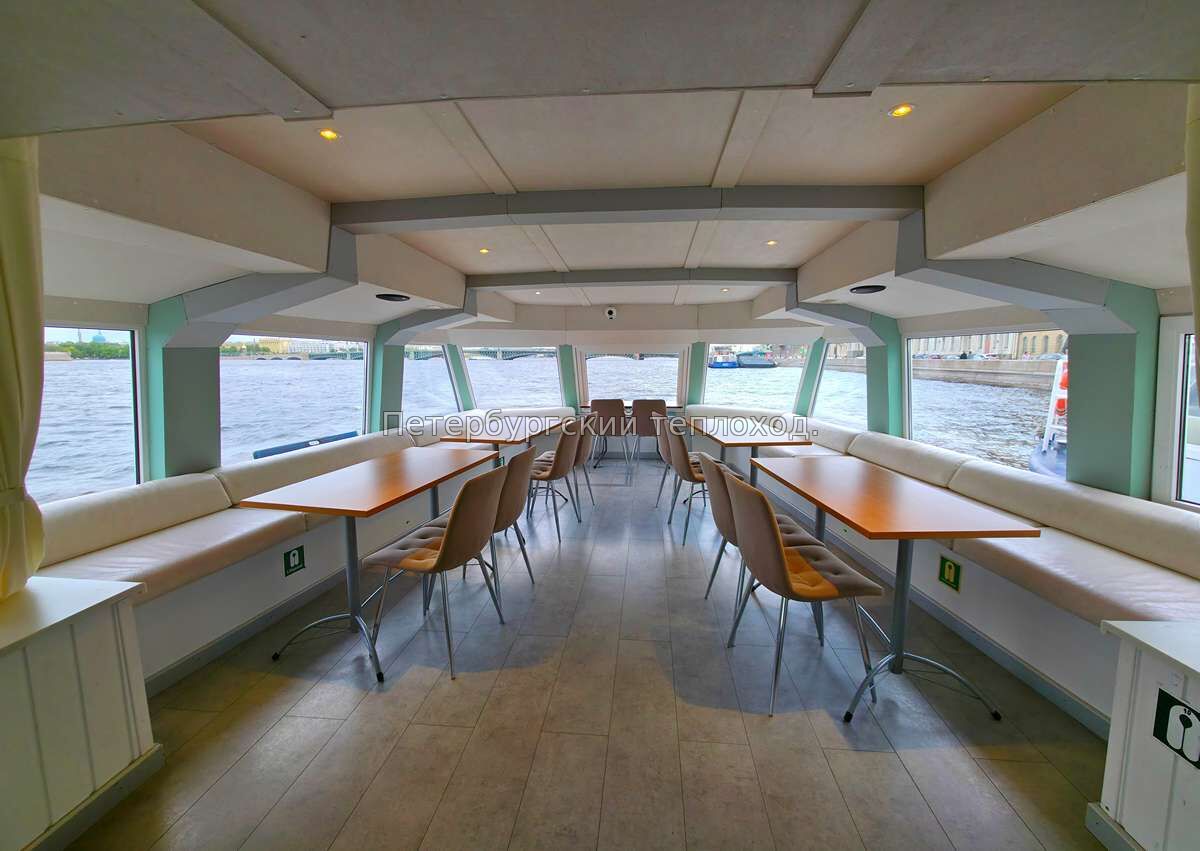 Основное преимущество теплохода, - это вместимость по документам 190 человек. В Санкт-Петербурге всего несколько теплоходов способны взять такое количество пассажиров. На теплоходе есть большой внутренний салон, открытая и закрытая верхние палубы. Удобные мягкие диваны расположены в носовой части.
