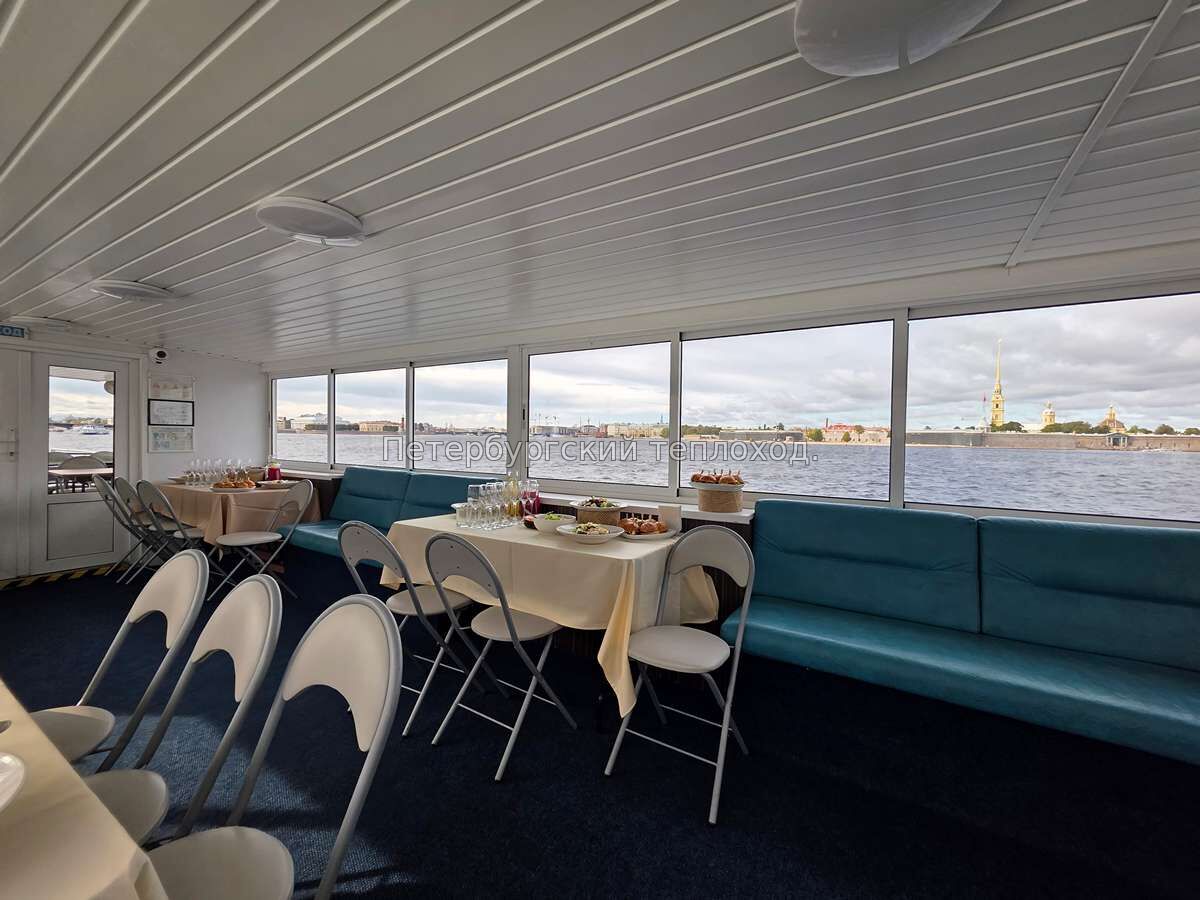 Привлекательный светлый салон, удобный для организации свадеб, если загс на Фурштадской. Базовый причал находится возле загса. Можно заказать свадебное катание на несколько часов или полностью банкет с обслуживанием. Ценовой уровень по меню зависит от количества гостей и вашего выбора.